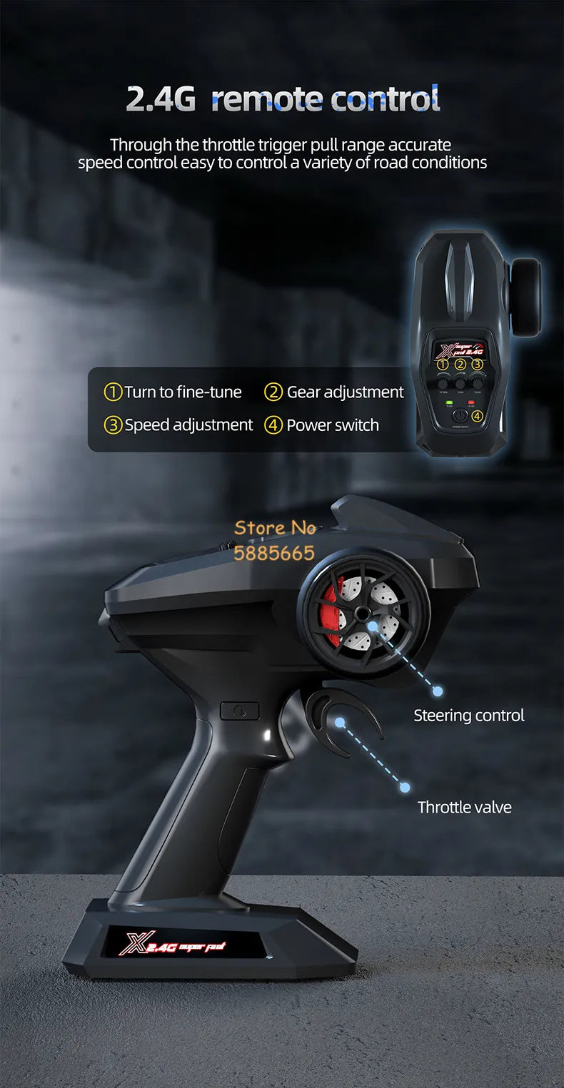 4. 2.4G full scale synchronized tccicadas remote control system . Full ratio throttle/steering.